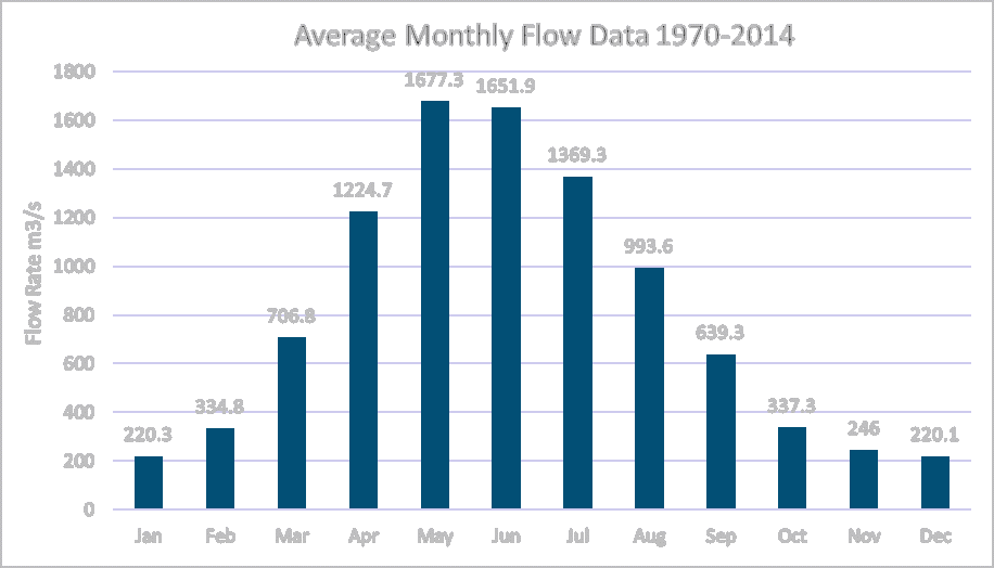 The mean monthly flows at Azad Pattan Site, based on the study of 1970 – 2014 hydrological data, is shown below:
