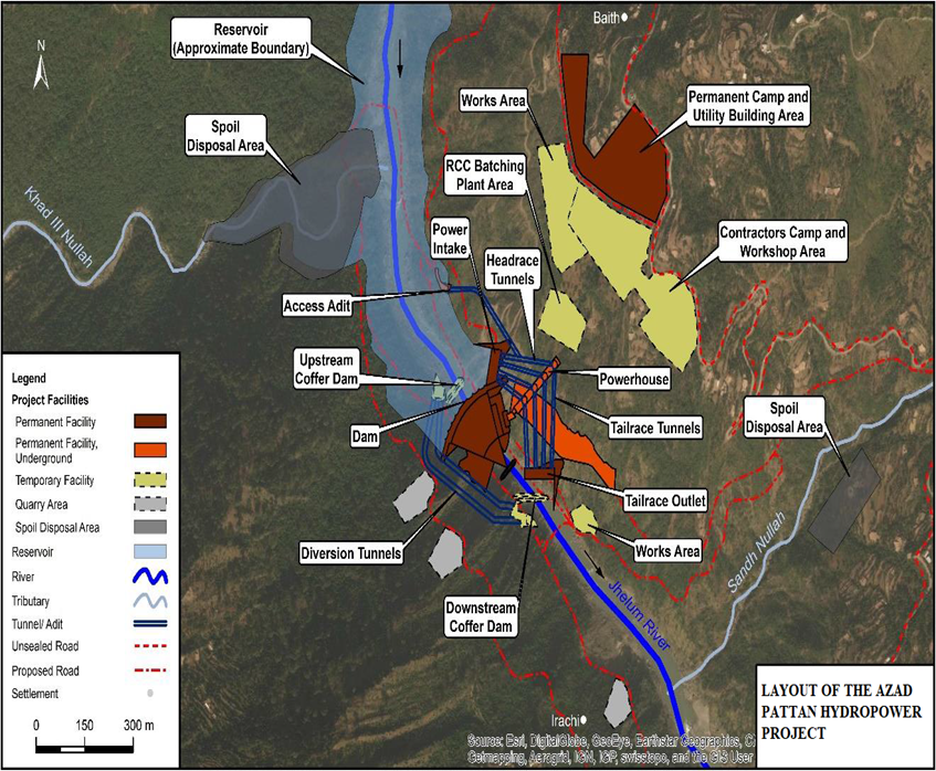 - • Power generation facilities – underground powerhouse with associated intake structure, headrace tunnels, penstock, and tailrace outfall;