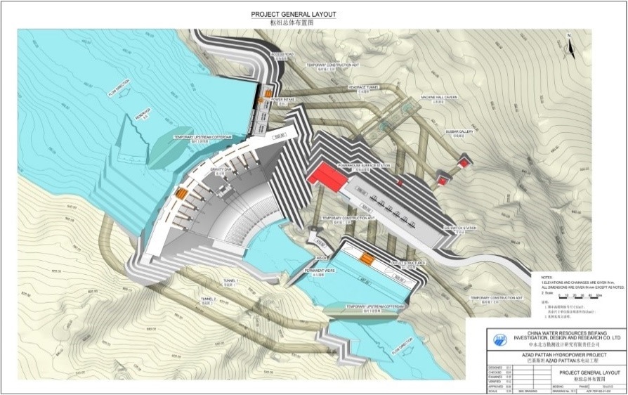 - • High-capacity gated spillway incorporated into the dam crest;